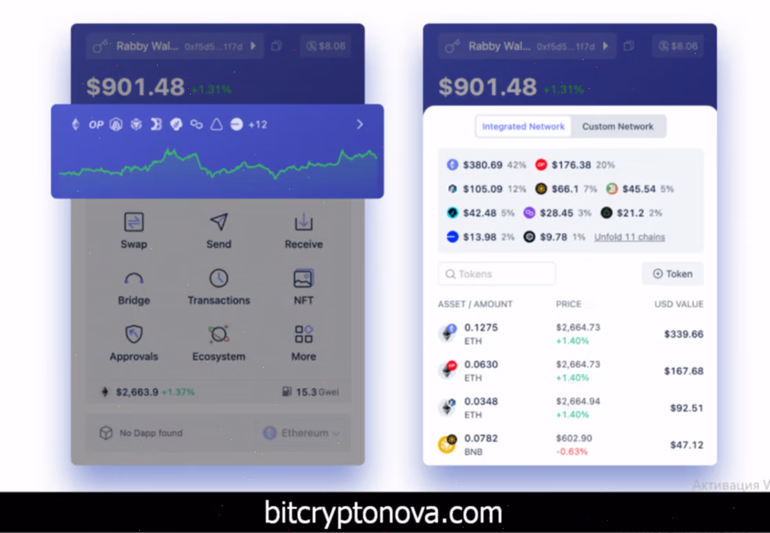 - Supports everything: Seriously, 100+ blockchains. Ethereum? Yes. Solana? Yes – a key advantage over many. BSC, Polygon, Avalanche, Bitcoin, TON – no problem. NFTs on all major chains are visible in the gallery with intelligent spam filtering.